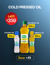 Cold Pressed Groundnut Oil (500ml) | Cold Pressed Gingelly Oil (200ml) | and Cold Pressed Coconut Oil (200ml)